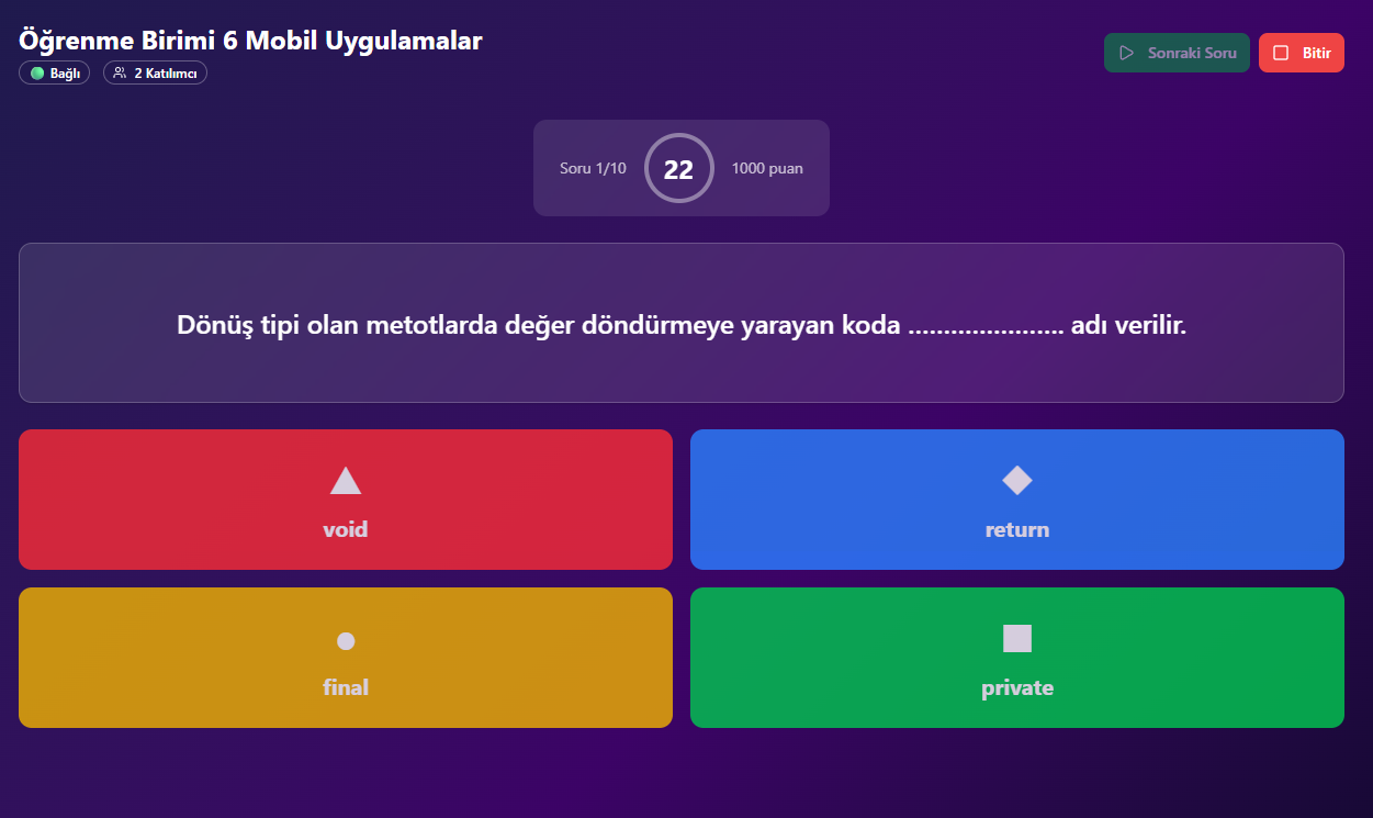 CANLI QUIZ modülüne gitmek için tıklayın!