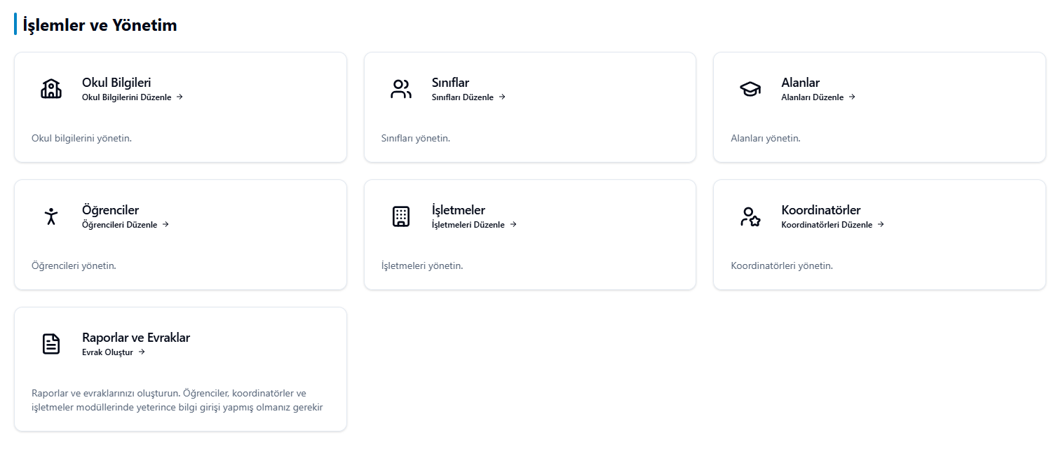 Web sitemizin panelinde İBE Modülü sayesinde işletmede beceri eğitimi evraklarınızı anında hazırlayabilirsiniz. >>> İBE Modülüne Git