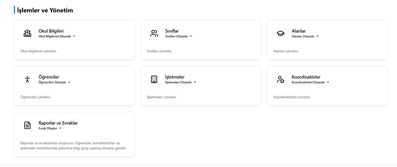 İBE(İşletmelerde Beceri Eğitimi) Modülü Aktif hale gelmiştir.